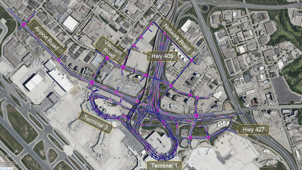 Airport curbside simulation in PTV Vissim turns complex frontages into decisions you can defend – at Pearson and at any busy curb.