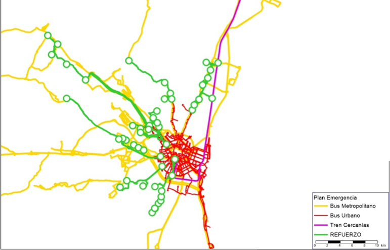 As recovery progressed, the emergency mobility plan evolved in phases, adapting to the gradual reintroduction of metro and commuter rail services. Demand hypotheses, service frequencies, and route configurations were continuously updated to reflect the changing situation.